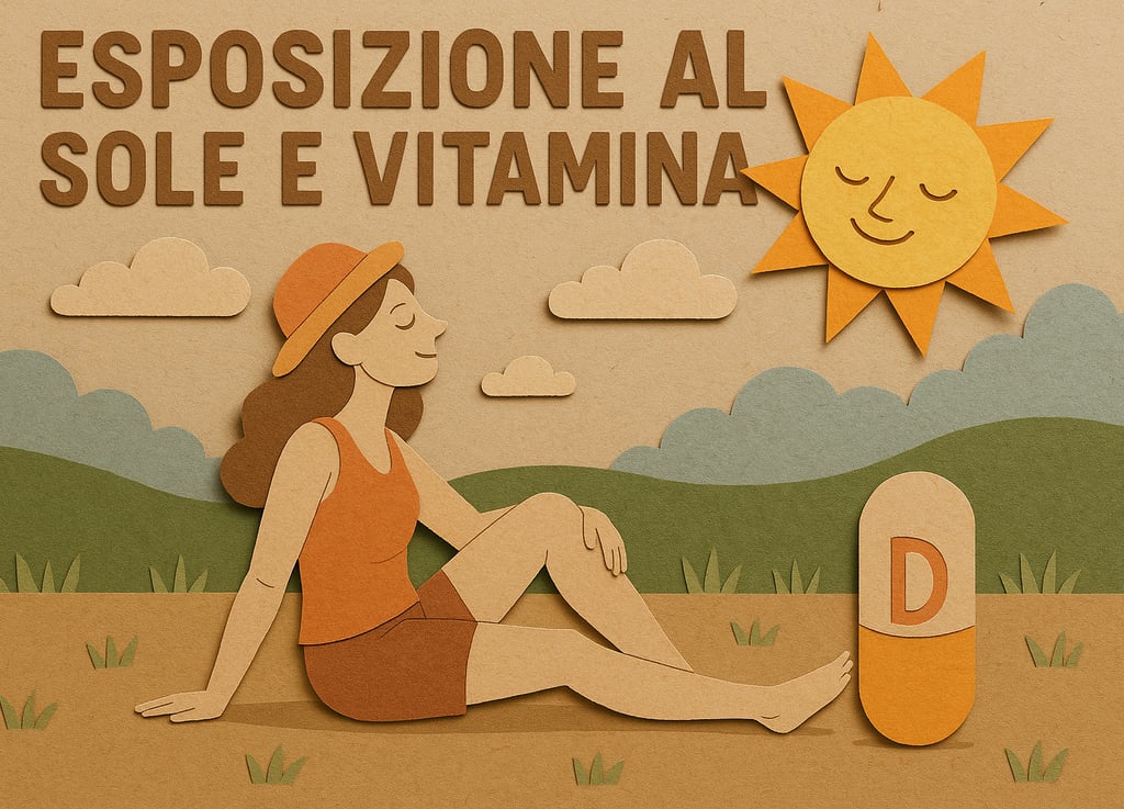 L’esposizione al sole rappresenta circa l’80% (o più) della produzione di vitamina D negli esseri umani, mentre la parte restante proviene dalla dieta o dagli integratori (Shraim et al., 2022; Wang et al., 2016; Sîrbe et al., 2022).